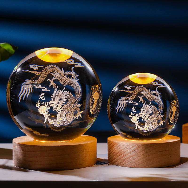 Esfera del Sistema Solar de Cristal, Bola de Cristal de Galaxia Grabada con Láser 3D con Base de Luz LED de Madera para Decoración del Hogar y Regalos