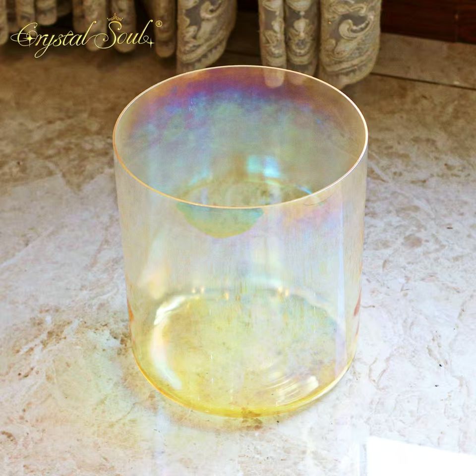 Crystal Soul 7-8,5 pulgadas Classic Seven Chakras Yellow Crystal Singing Bowl Sets Meditación Alquimia Cuencos Fuente Fabricante