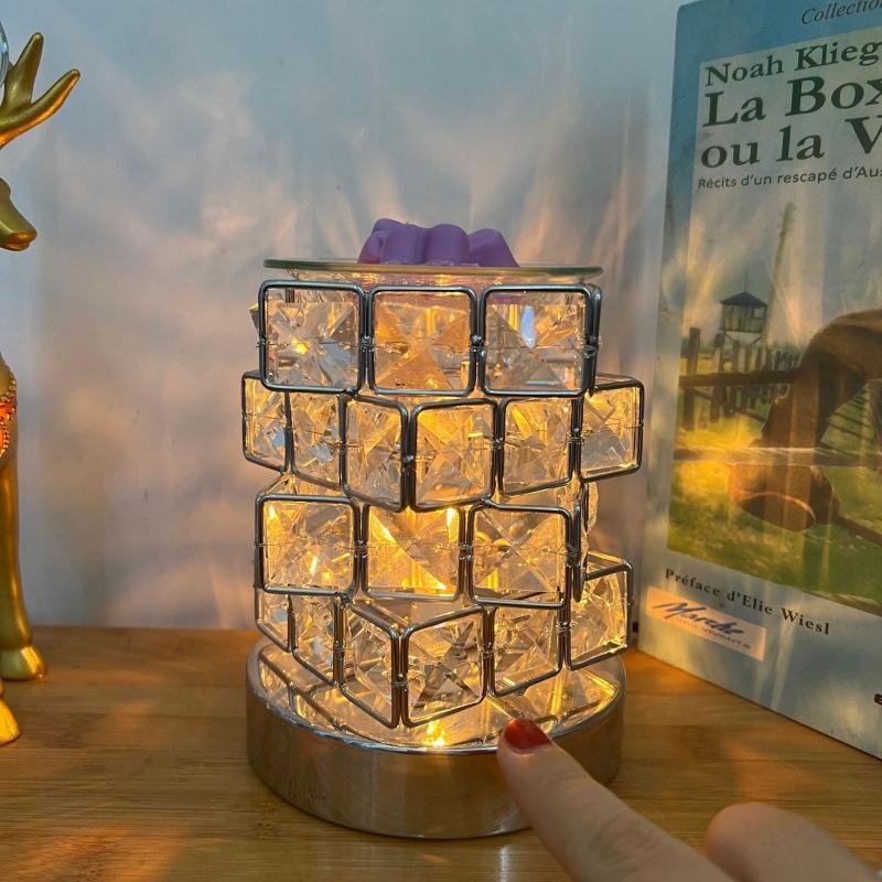 Lámpara de Cristal Cuadrada, Cubo Mágico, Mineral Metálico, Cristales Naturales Ligeros, Lámpara de Mesa para Hotel o Mesita de Noche