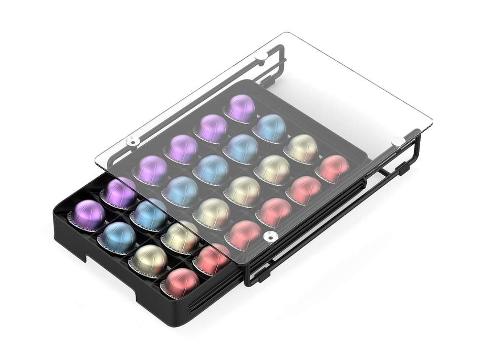 Soporte de cajón organizador de cristal templado compatible con cápsulas Nespresso Vertuo, compatible con 24 cápsulas Vertuoline
