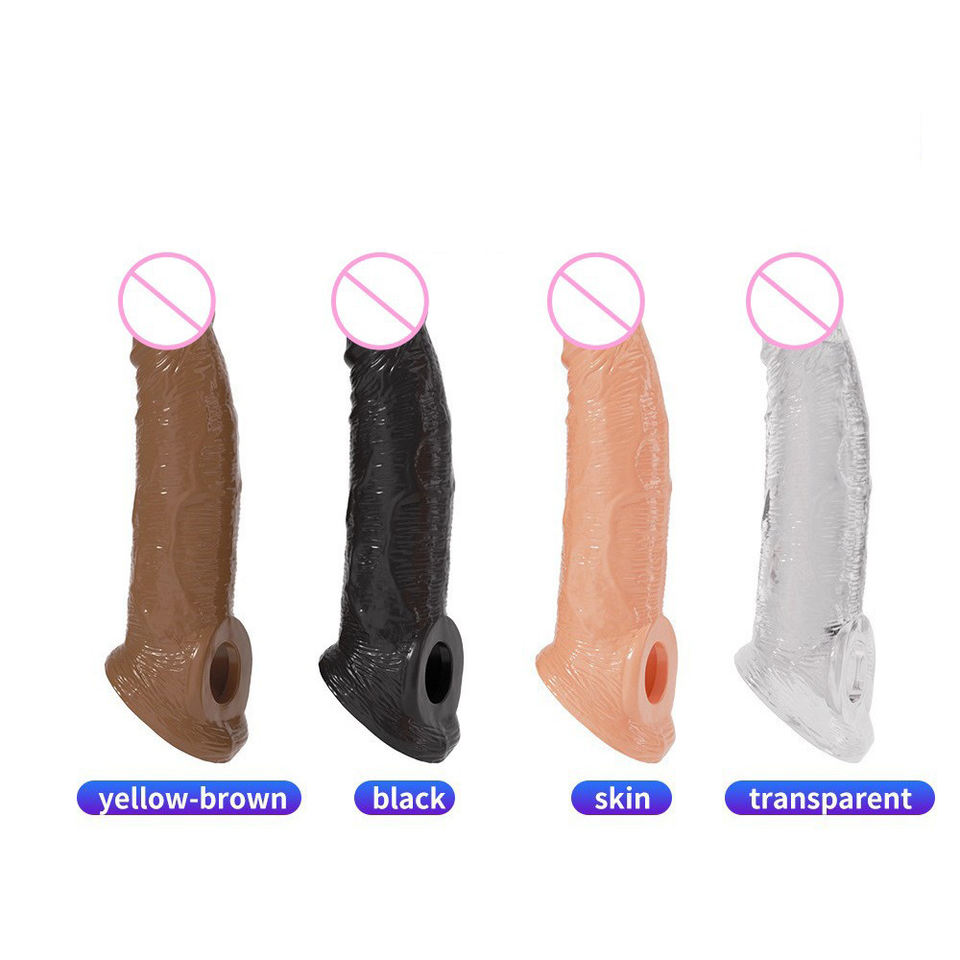 Condón transparente de cristal, juego de dientes de lobo, anillo de esperma con bloqueo de pene para hombre