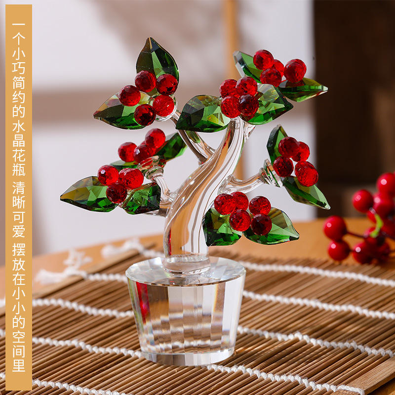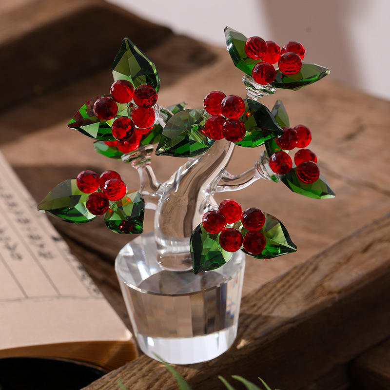 Mini Adorno de Árbol de Cristal con Hojas Rojas y Verdes, Decoración para el Hogar u Oficina, Regalo, Decoración de Planta de Cristal
