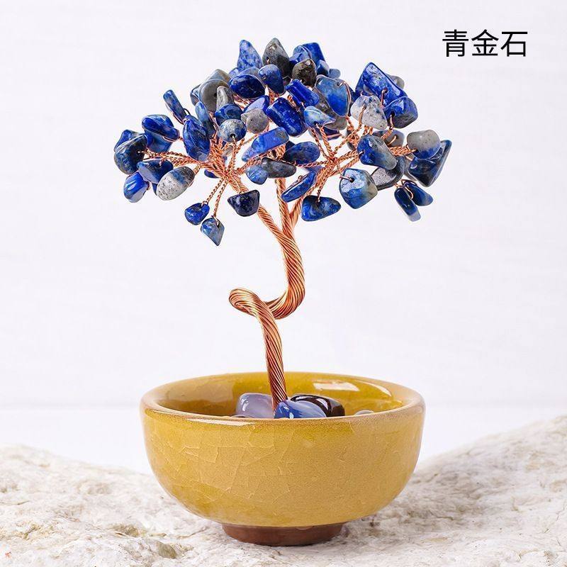 Adorno de Árbol de Cristal con Amatista en Marco de Alambre y Base de Cerámica Amarilla, Decoración para el Hogar, Regalo