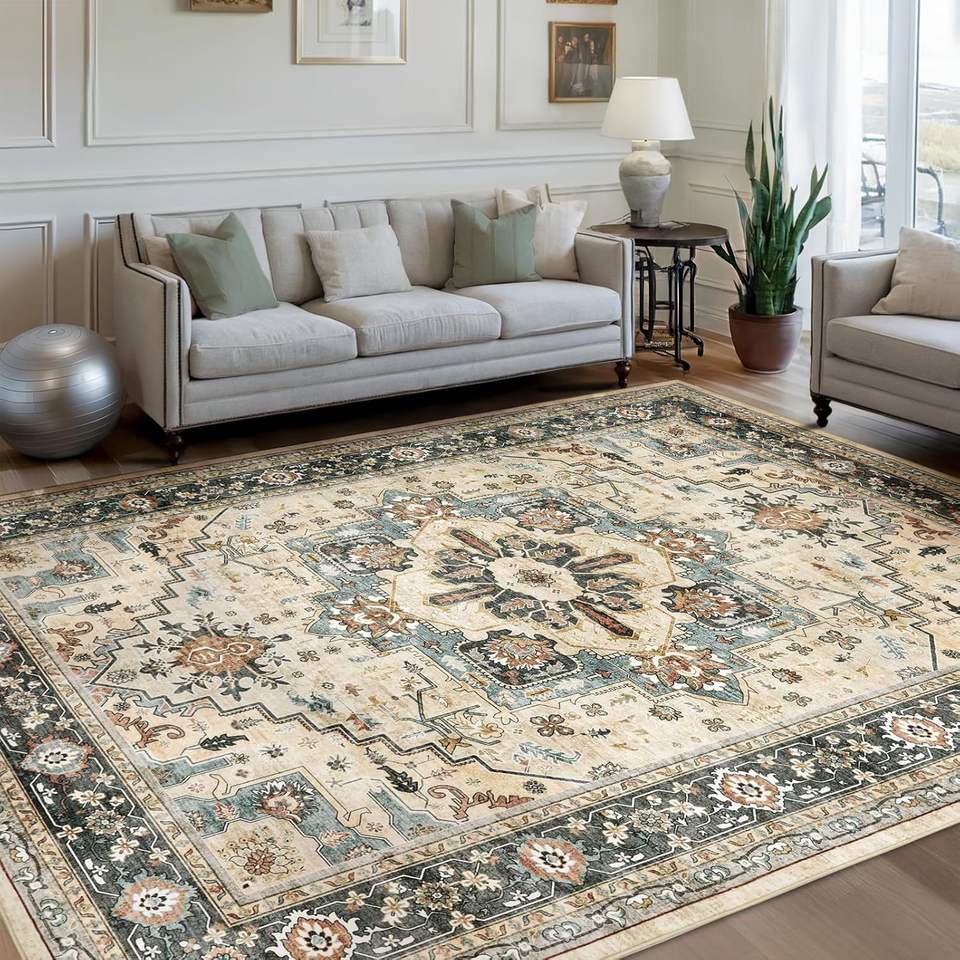 Alfombra Persa de Terciopelo Cristal, Rectangular, Resistente a las Manchas, para Sala de Estar o Dormitorio, Lavable con Agua, Alfombra Decorativa
