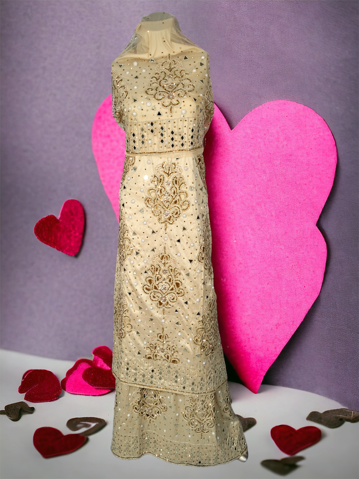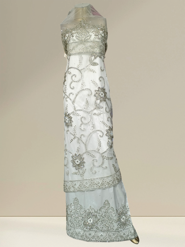 Feture (en inglés):Tejido de seda George de trabajo a mano