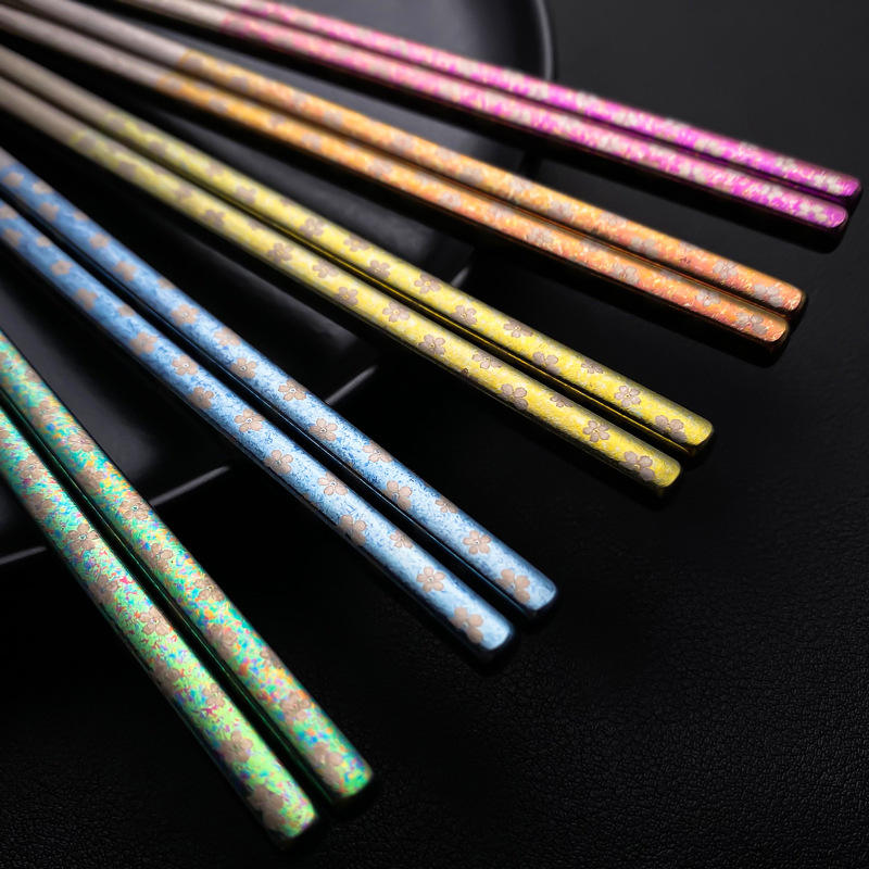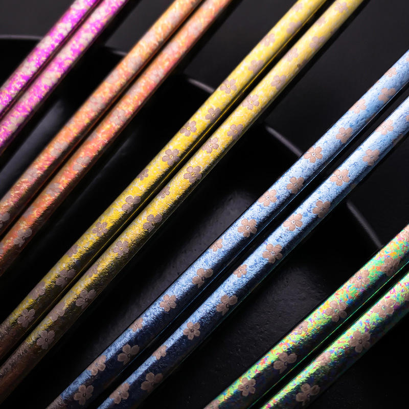 Palillos de Titanio Puro Color Flor de Hielo Cristalizada, Redondos, Antideslizantes, Anti-quemaduras, Juego de Regalo de 5 Pares