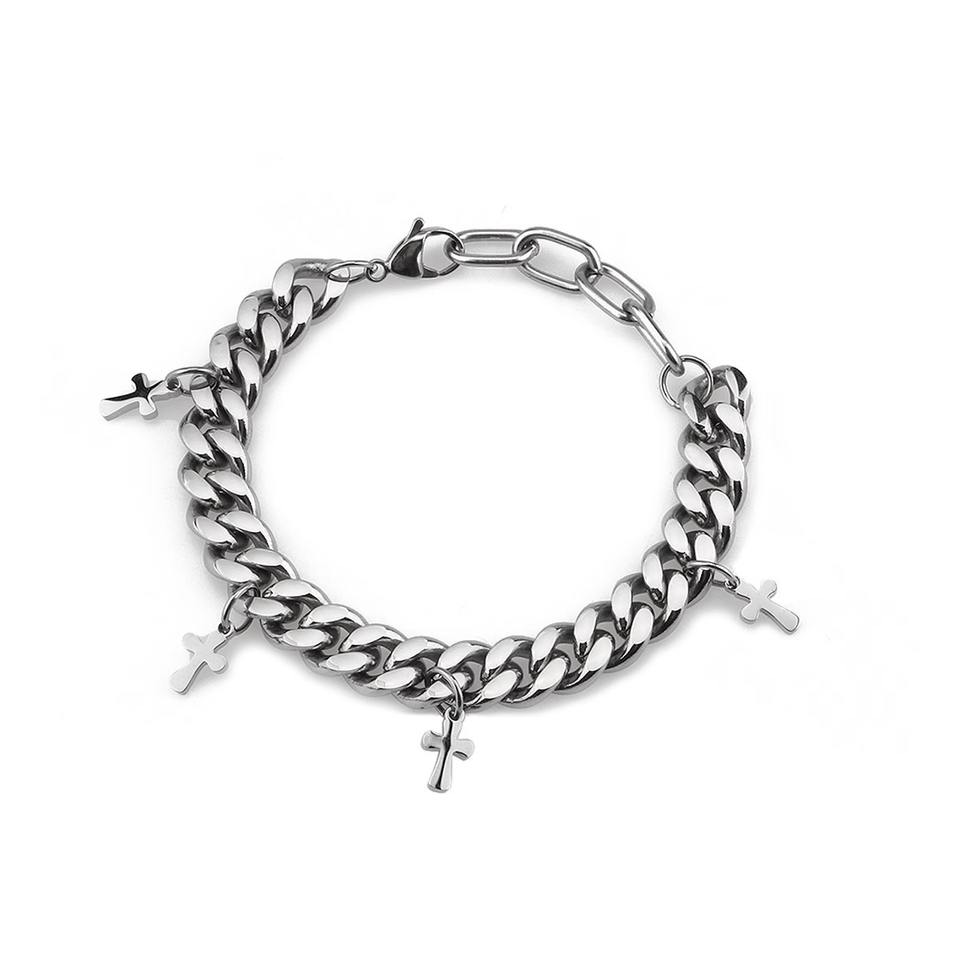 Pulsera de Cadena Cubana Gruesa Tiyo para Hombre con Colgante de Cruz, Aleación de Zinc, Plateada, Regalo de Aniversario