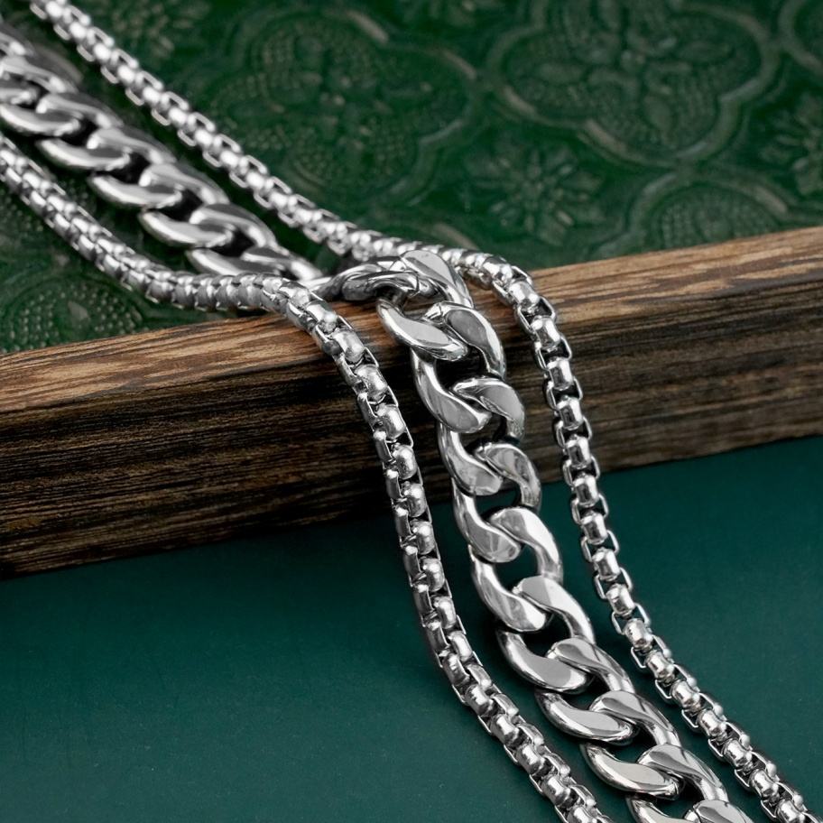 Pulseras de eslabones cubanos, cadena de caja redonda, banda para la muñeca de acero inoxidable, accesorios de joyería de moda, joyería al por mayor, cadena cubana