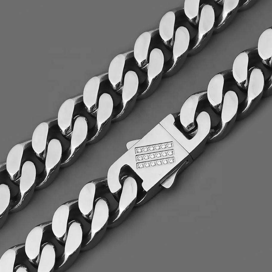 Cadena cubana de eslabones rectangulares grandes y pesados para hombre, collar de acero inoxidable estilo Miami, joyería con dijes.