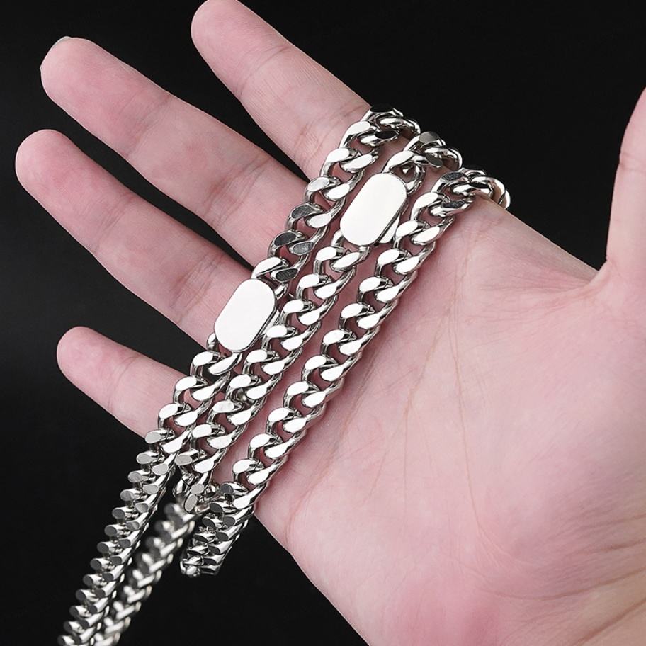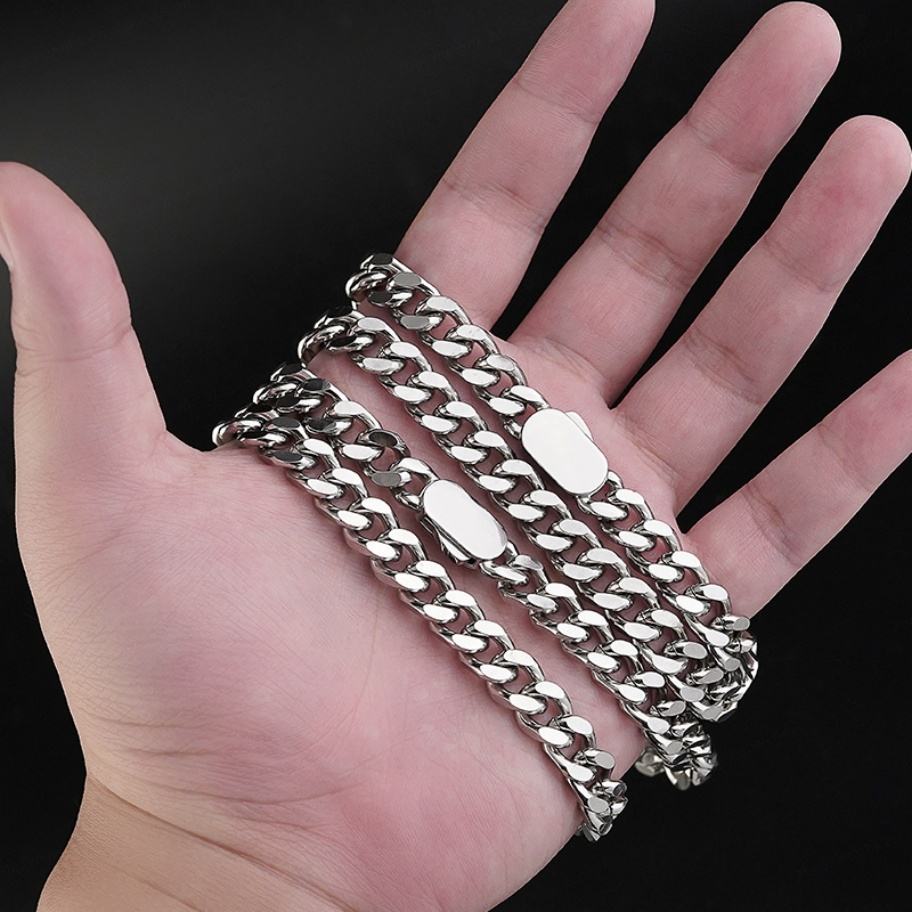 Cadena Cubana de Acero de Titanio Estilo Hip Hop Miami, Collar de Eslabones para Hombre y Mujer