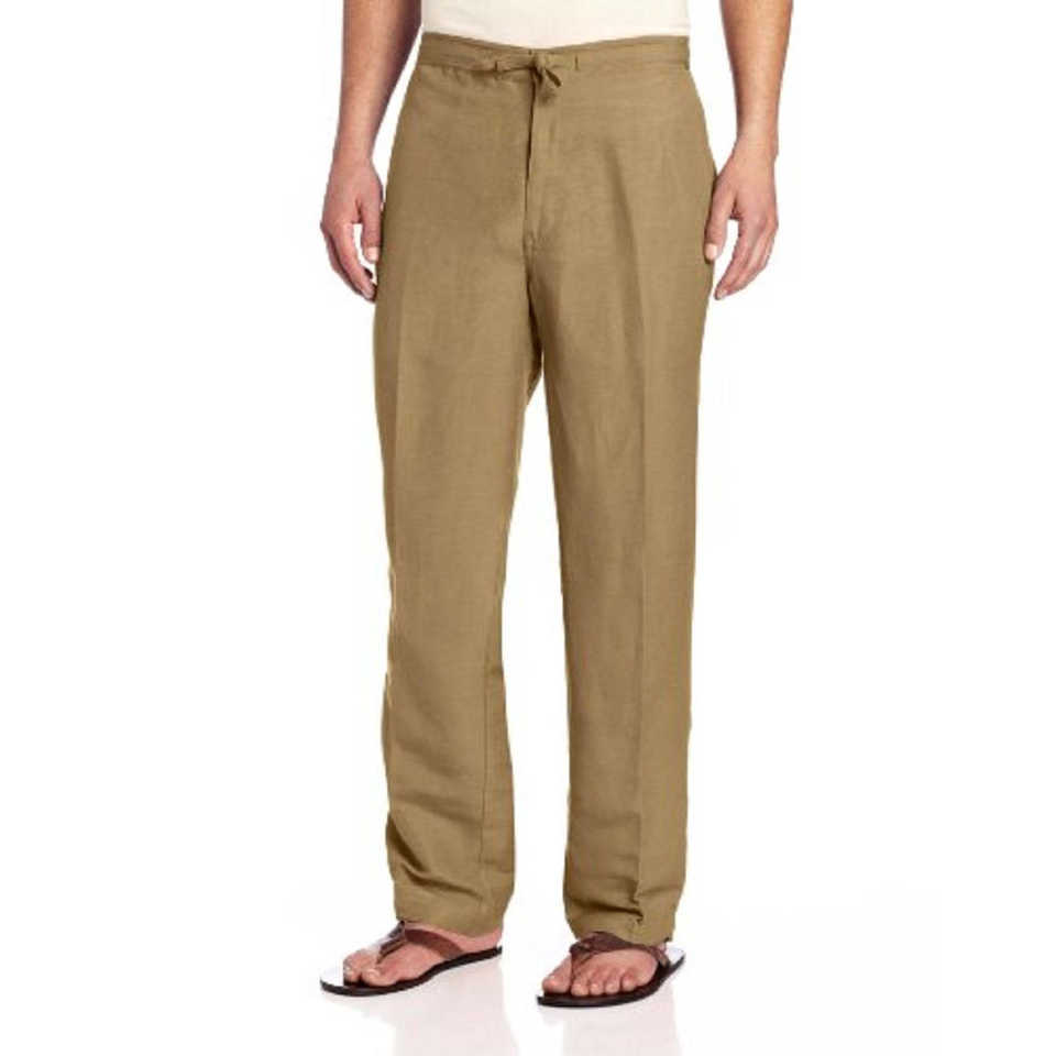 Pantalones Formales Beige con Cordón para Hombre Cubavera, 100% Lino, Antiarrugas, Talla X-Large, Logotipo Personalizable
