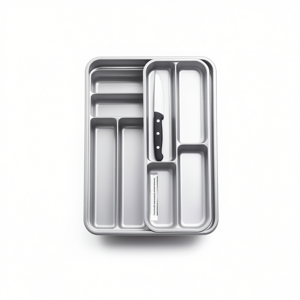 Cubertero de 2 piezas, organizador de cubiertos de metal plateado, organizador de cajones multifunción, inserto de almacenamiento de cocina para gabinetes