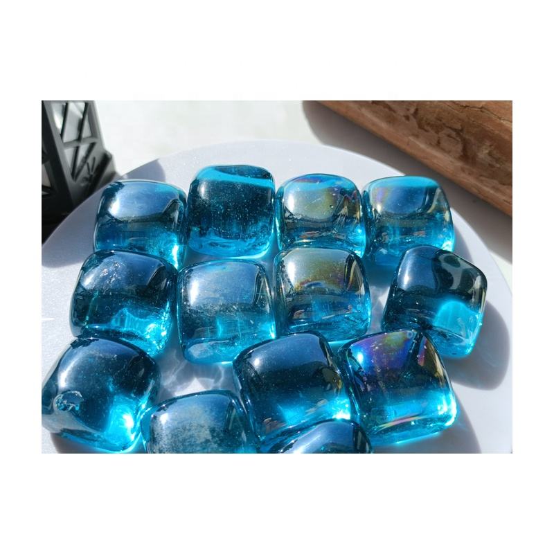 Cubos de Vidrio Azul Caribe para Decoración de Braseros, Resistentes a Altas Temperaturas, 25x25x14mm o 18mm