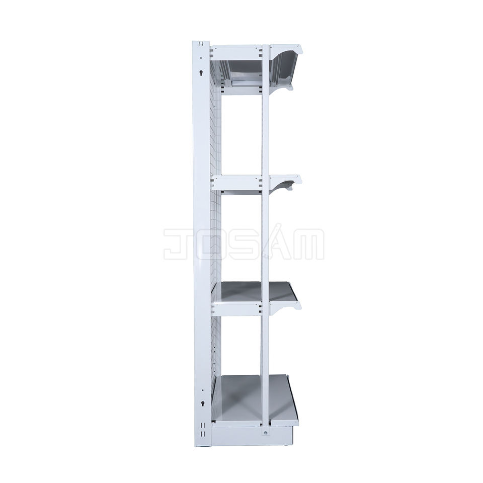 Estanterías de Góndola Tipo L de Alta Resistencia, Directas de Fábrica, 48W 17D TL, Estante de Metal Plateado, Capacidad de 80-120 kg, Perforadas, para Supermercado
