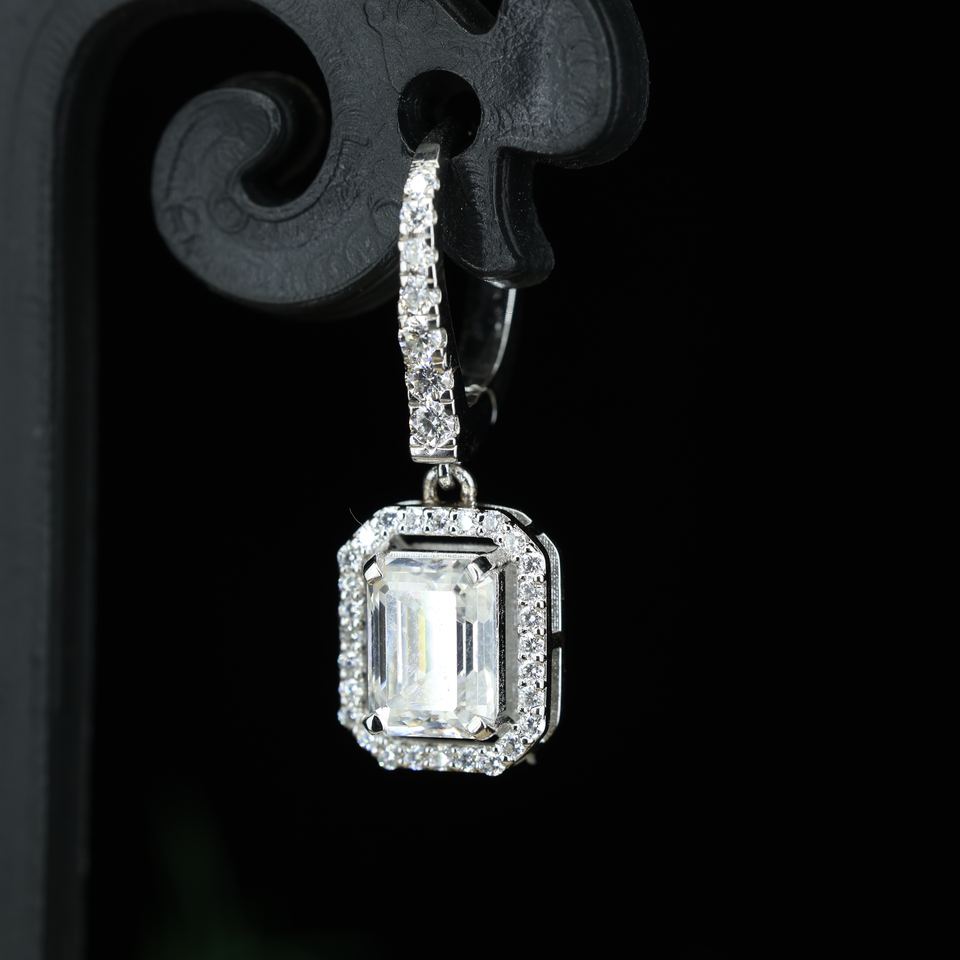 Pendientes Colgantes Cúbicos con Cierre de Rosca, Joyería de Plata de Ley 925 Maciza con Engaste de Garra, Perla de Agua Dulce y Moissanita para Venta al por Mayor