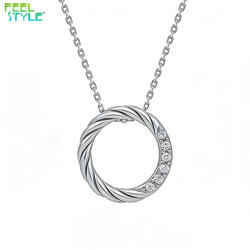 Collar con Colgante de Anillo del Destino, Diseño Cruzado Personalizado con Incrustaciones de Circonita Cúbica, Chapado en Oro de 18K PVD