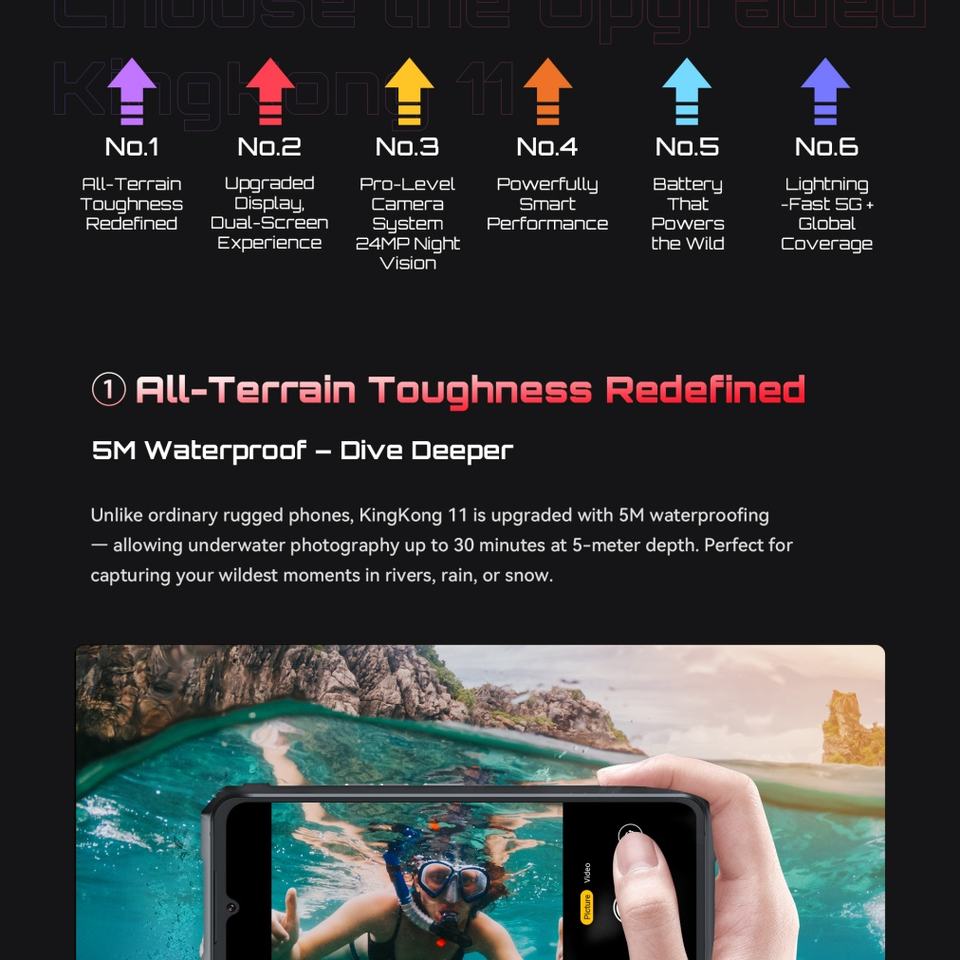 Teléfono Móvil Resistente Cubot 5G con Visión Nocturna, Cámara Principal de 108MP, 16+256GB, Android 15, Smartphone Cubot Kingkong 11