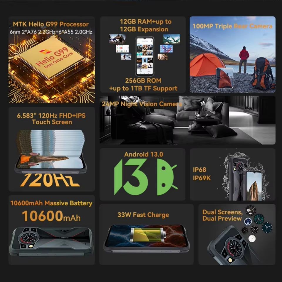 Teléfonos Inteligentes Resistentes Cubot de 6.583 Pulgadas G99 12GB+256GB Android 13 Móvil 10600mAh Cámara de Visión Nocturna Teléfono NFC Cubot King Kong 9