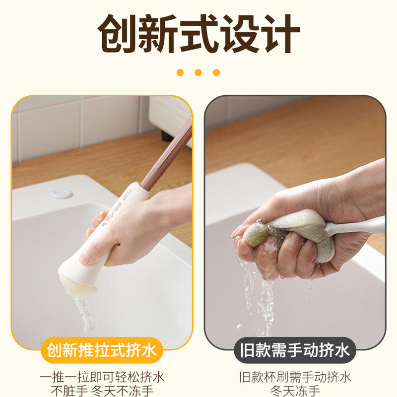 Cup Brush Long Handle 2 In 1 Sponge Cleaning For Cups Bottles With Hanging Loop PP Material