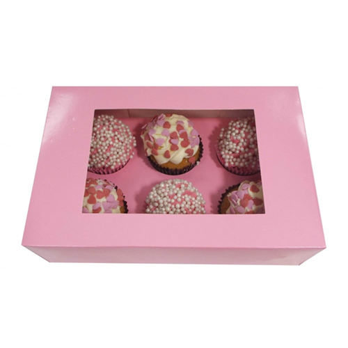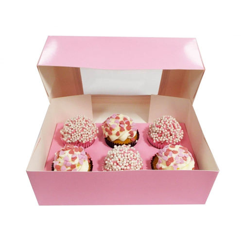 Caja de magdalenas y caja de embalaje transparente de satén de lujo con capacidad para 6 agujeros Cajas de comida Rosa Para magdalenas Caja de pastel con ventana blanca