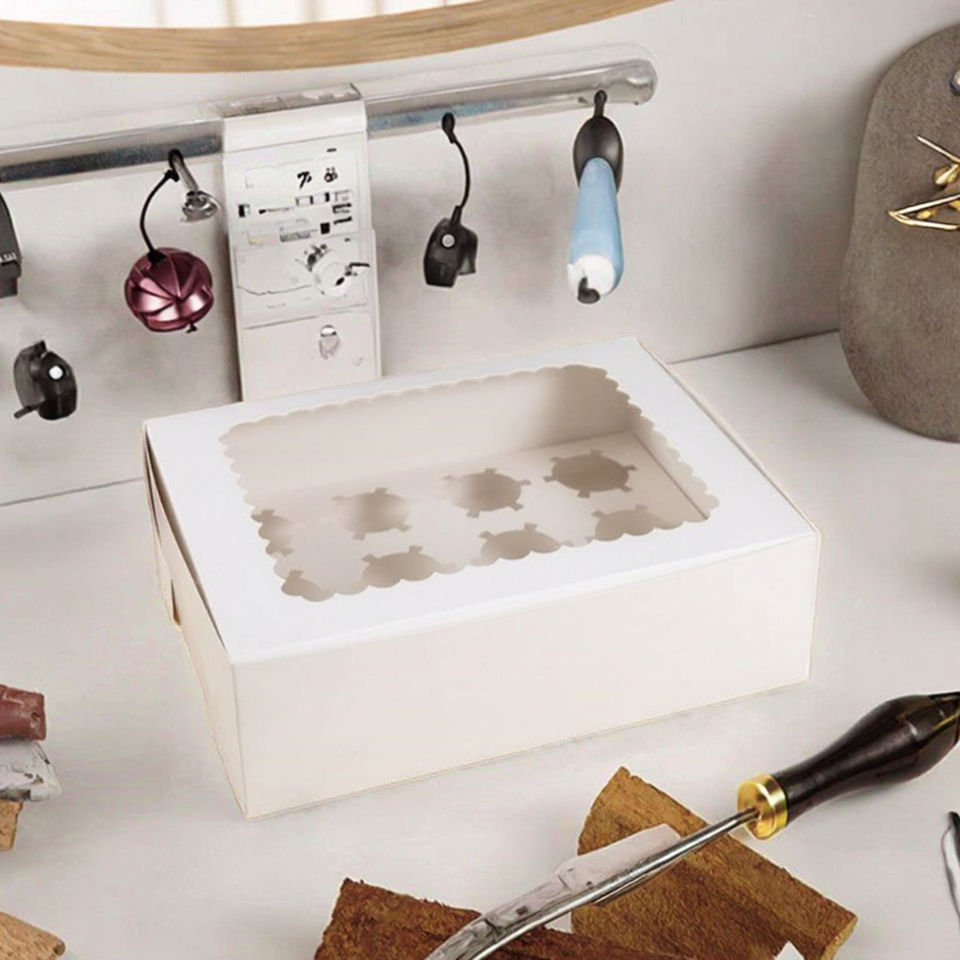 Contenedores para Cupcakes con Ventana Transparente y Soporte para Golosinas, Cartón con Laminado Mate, Aptos para Alimentos, Estilo Carpeta
