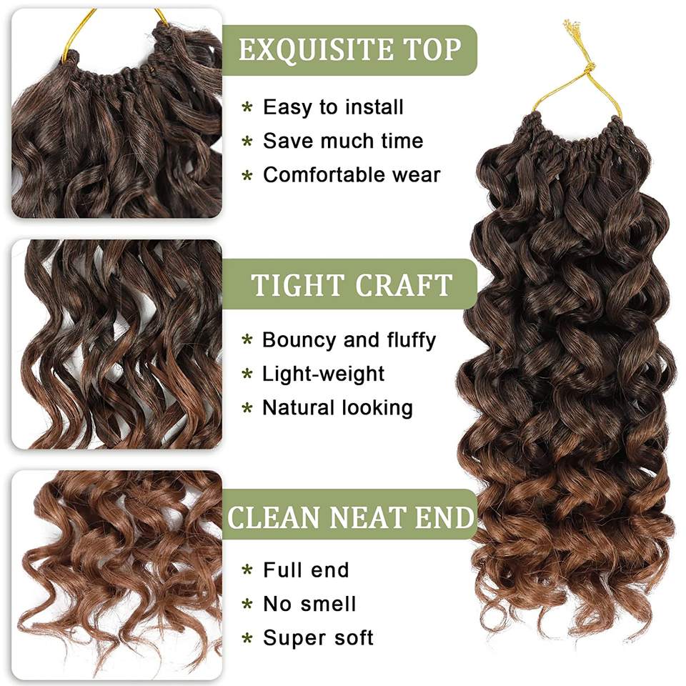Extensiones de Cabello Rizado para Crochet, 8 Paquetes de 10 Pulgadas, Ondulado Tipo Agua, para Mujer, Cabello Rizado Corto Estilo Playa