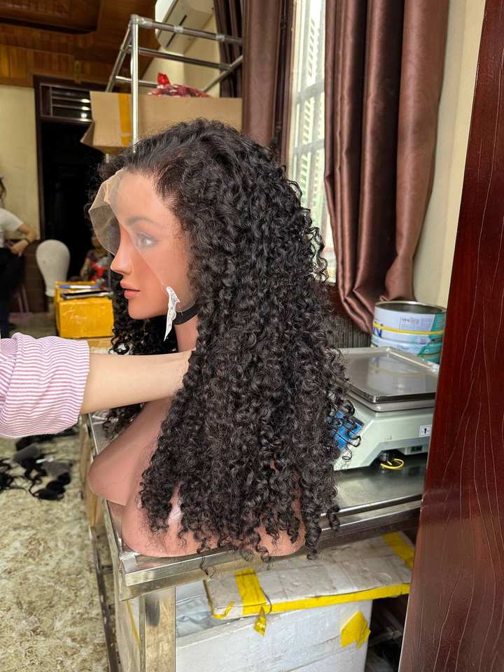 Pelucas de cabello humano crudo vietnamita rizado con frente de encaje transparente HD para trenzado y blanqueamiento de cabello de mujeres negras