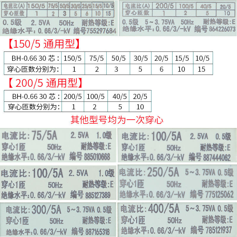 Transformador de Corriente 150/5 75/5 50/5 30/5 25/5 15/5 10/5 50Hz Clase 0.5 2.5VA Aislamiento Grado E Espaciado entre orificios de 30mm