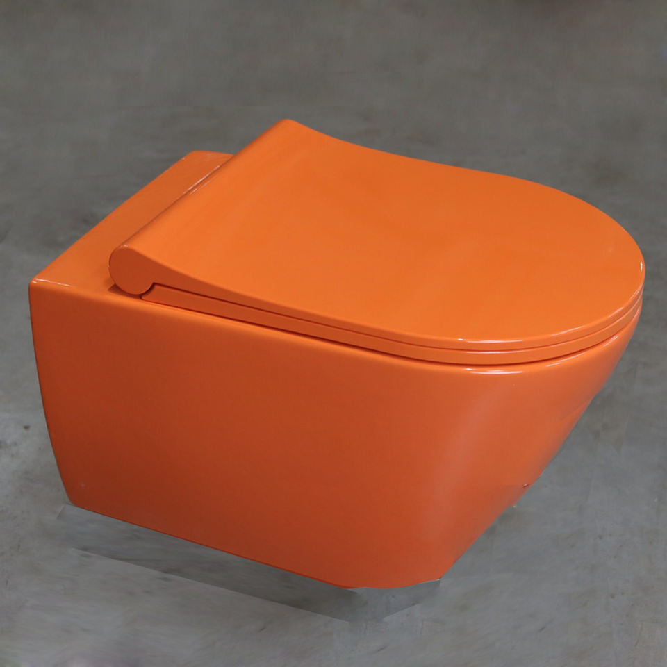 Inodoro Curva WC Rosa con asiento suave, naranja, sanitario, City, con esmalte extra, cisterna inteligente de doble descarga, color marino mate.