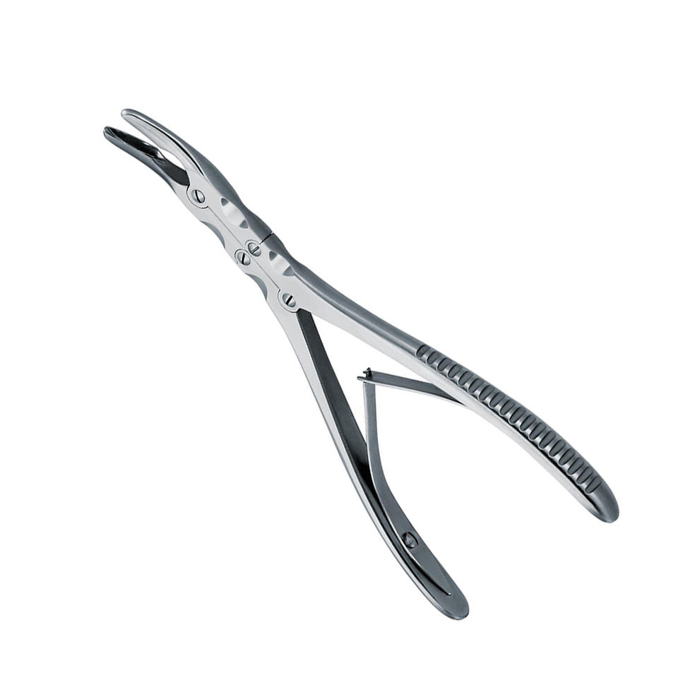 Curvo Beyer Bone Rongeur Doble acción Dall Finish Pinzas manuales alemanas de acero inoxidable Alta potencia de corte
