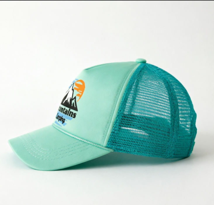 Gorra de Béisbol de 5 Paneles para Mujer, Estilo Trucker, con Visera Curva, Cierre a Presión, Estampado Digital, Impermeable