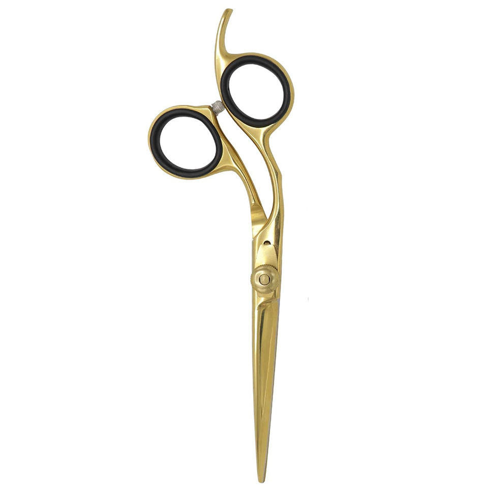 Tijeras de peluquero con mango curvo, tijeras de corte de pelo con hoja afilada recubierta de oro con tornillo ajustable y anillo de goma