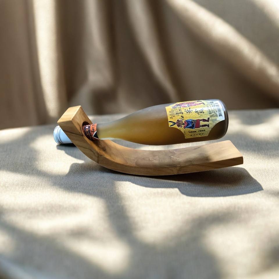 Estante para Vino de Madera de Teca en Forma de Luna Curva, Diseño Minimalista Ecológico, Soporte para Botellas de Vino para Restaurante, Cocina, Bar, Comedor