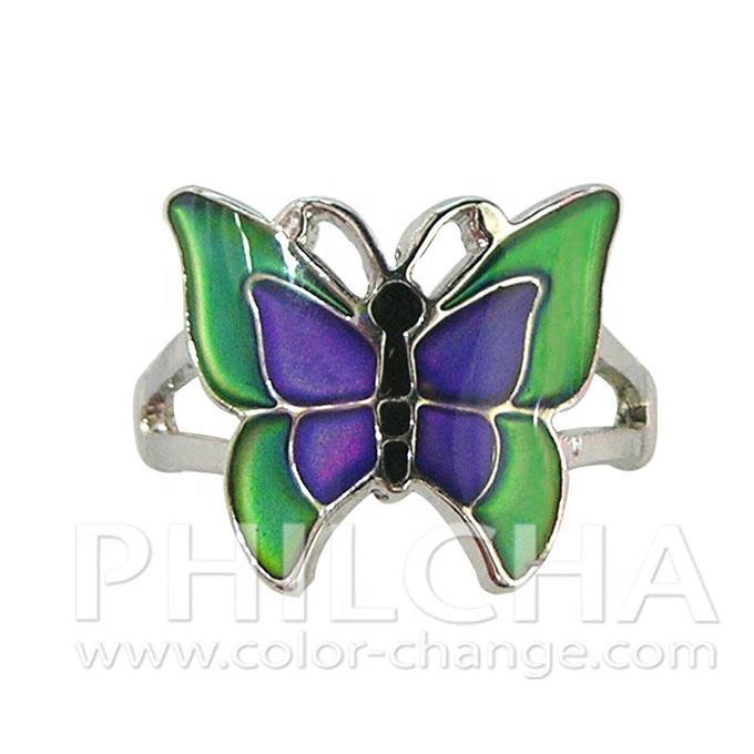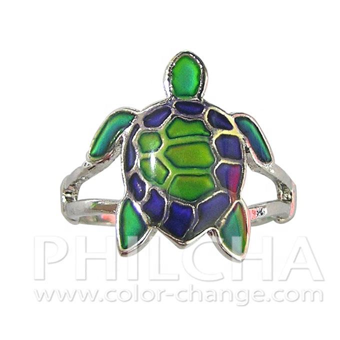Anillo de estado de ánimo con cambio de color de metal de forma curva con diseño de tortuga de corazón de mariposa