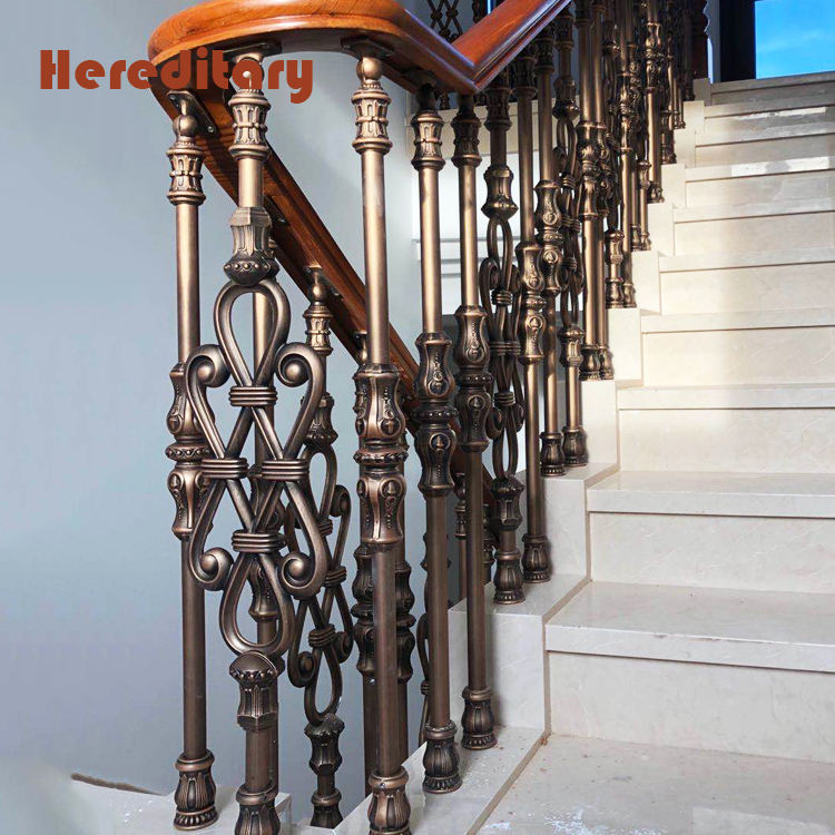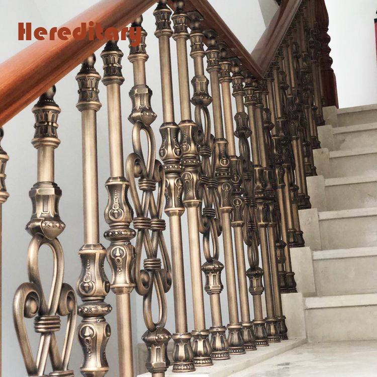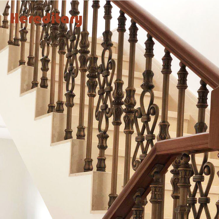 Escalera curva barandilla de aluminio fundido de bronce y barandillas de metal curvas para escalera antigua villa Hotel