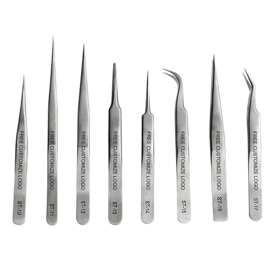 Juego de herramientas de reparación de montaje de punta fina recta curvada, pinzas de acero inoxidable Vetus no magnéticas industriales de alta precisión