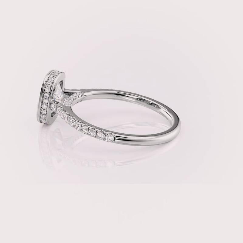 Anillo de Compromiso Personalizado de Oro Blanco de 14K con Diamante Cultivado en Laboratorio de Corte Cojín, con Halo y Base Pavé
