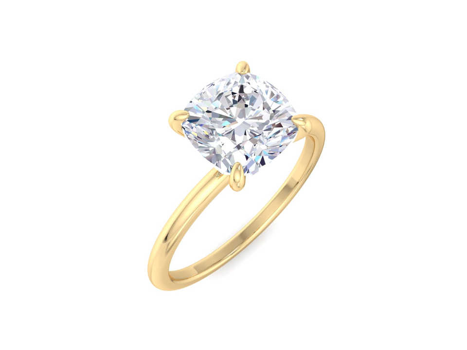 Anillo de Compromiso Solitario con Diamante Cultivado en Laboratorio con Corte Cojín, Anillo de Compromiso Clásico de Oro con Diamante, Anillo de Diamante Minimalista