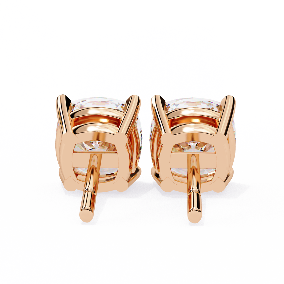 IGI Certified 14K Rose Gold 4 Prong Basket Setting Cojín Cut Lab Grown Diamond Stud Pendientes
