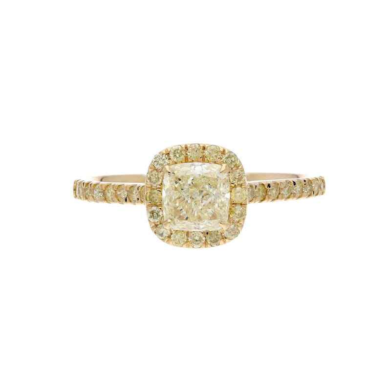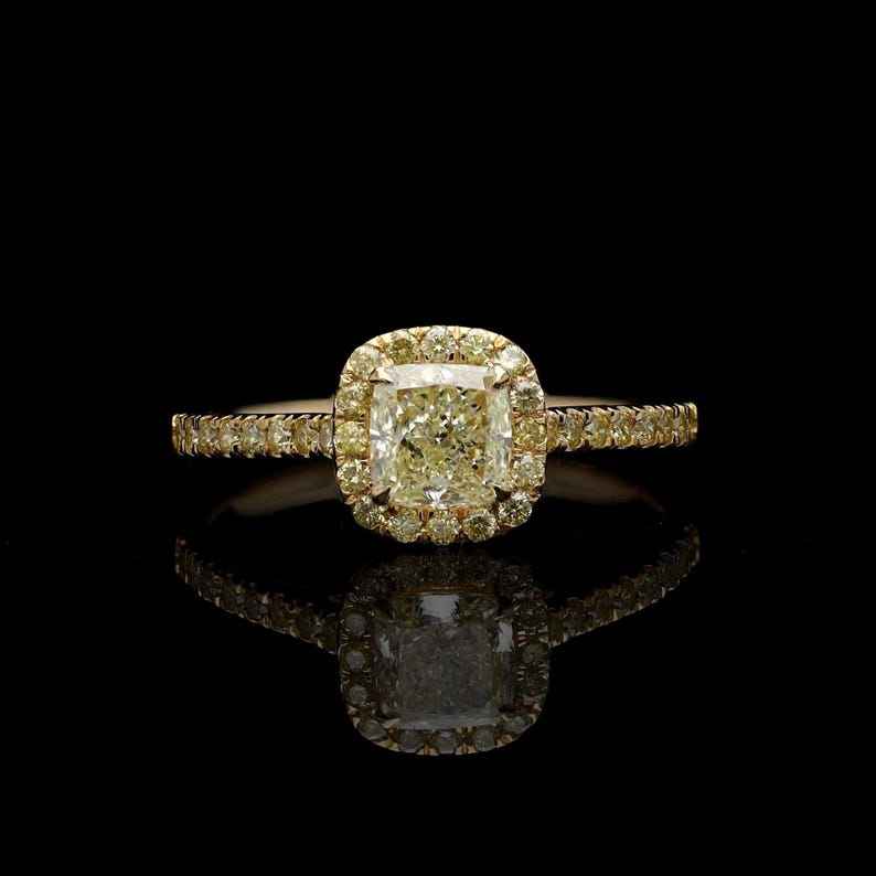 Palabra clave:Anillo Solitario de Moissanita Amarilla con Corte Cojín, Joyería de Lujo Elegante