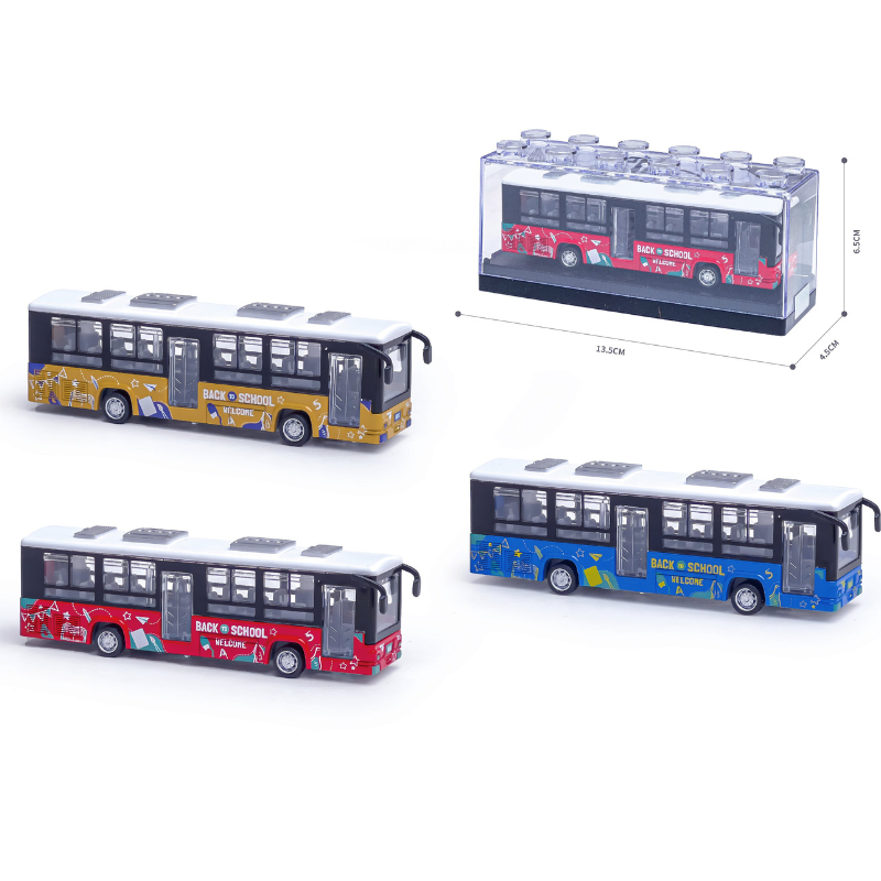 1:64 Coche pequeño de aleación, autobús de rueda libre, tren, caja de bloques de construcción