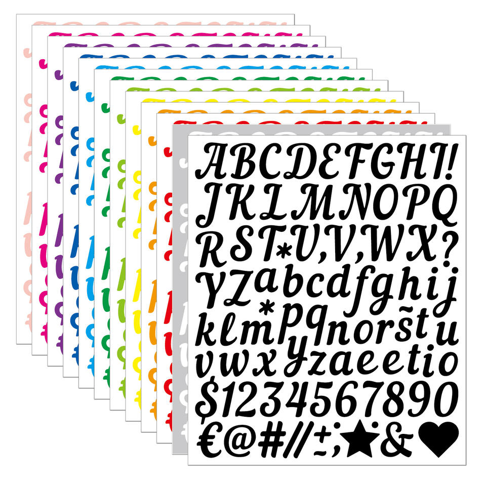 Pegatinas personalizadas de letras manuscritas de 1 pulgada, hoja de pegatinas de corte de beso del alfabeto inglés