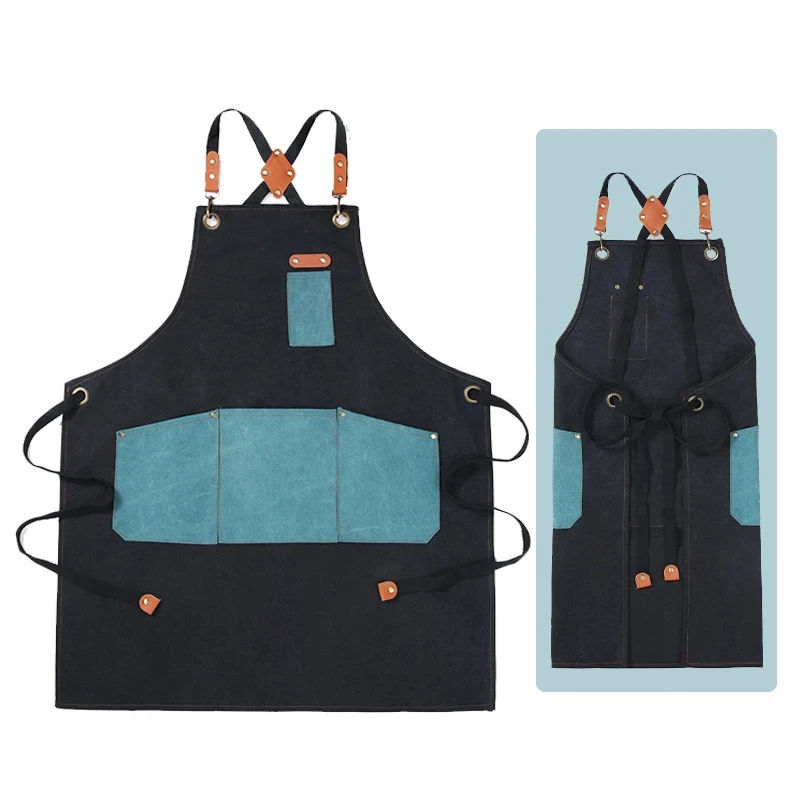 Delantal sin mangas negro de algodón 100% personalizado para uso de refrigeración de cocina de mujer con logotipo personalizado