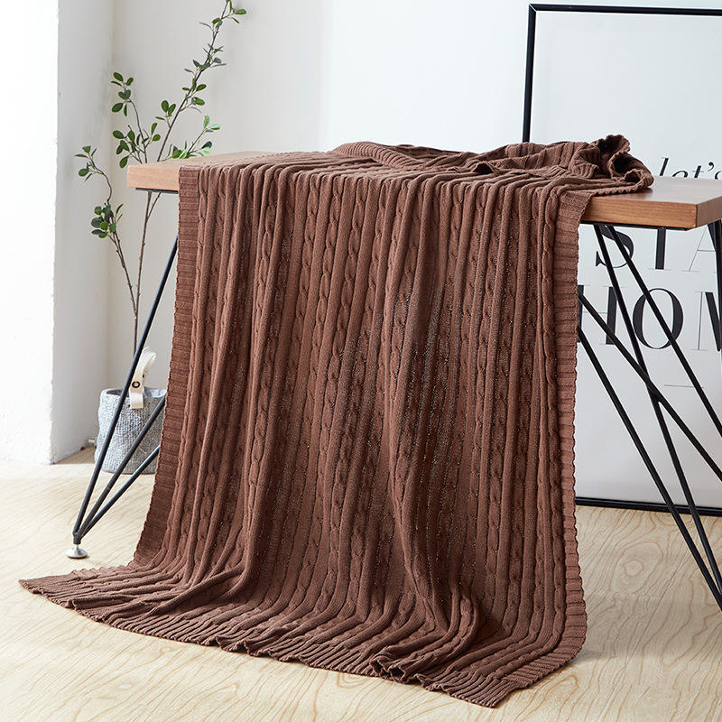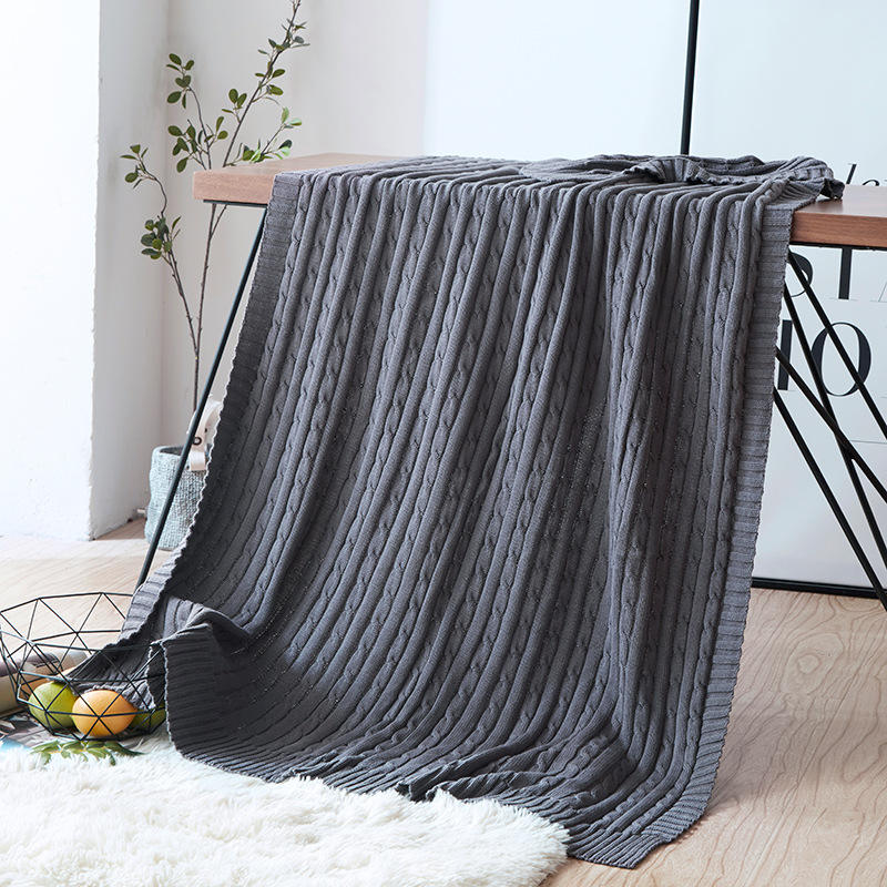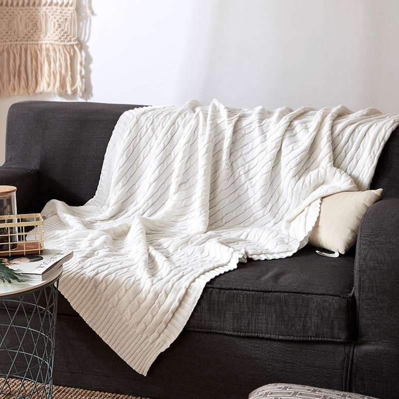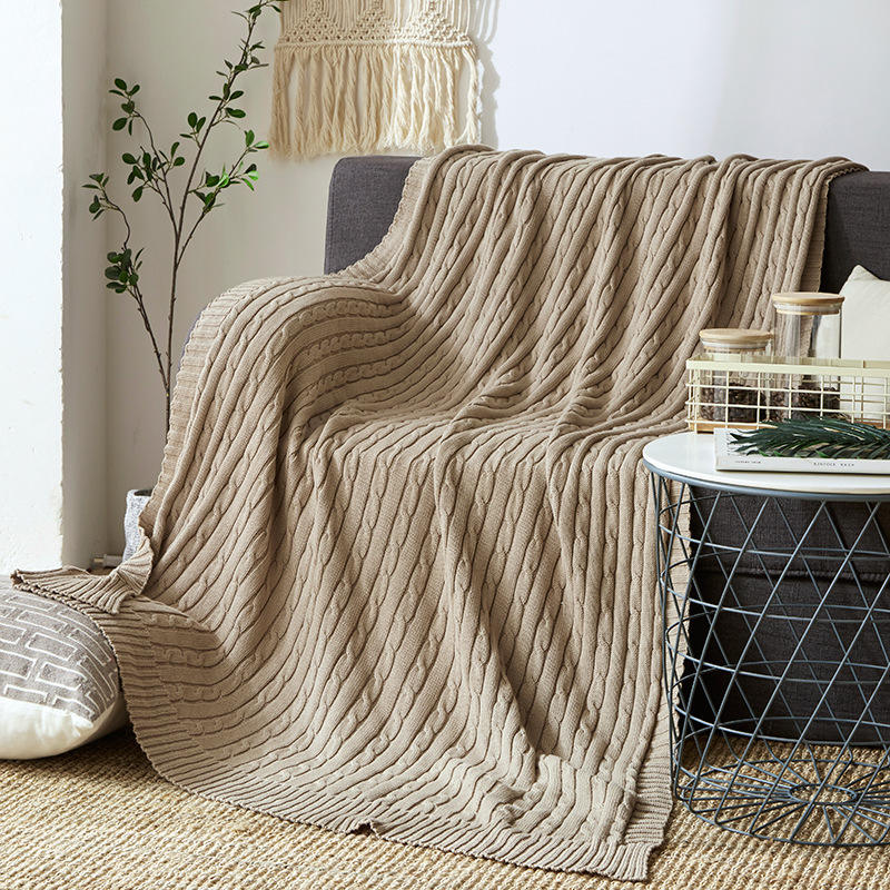Manta de punto con Cable de algodón 100% personalizada, manta de Color sólido supersuave y cálido para sofá, cama doble, sillón