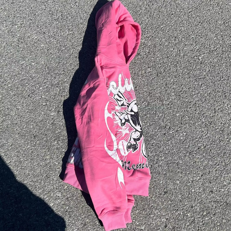 Sudadera con capucha para hombre de felpa 100% algodón personalizada, con bordado de parches desgastados, impresión DTG, pedrería de colores, efecto descolorido por el sol y dobladillo sin rematar cosido.