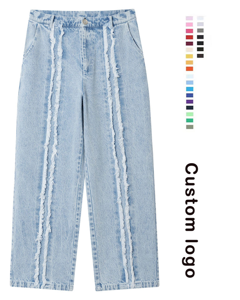 Pantalones Anchos Casuales de Estilo Vintage para Hombre, de Mezclilla Azul Claro 100% Algodón, con Parches, Estilo Holgado y Cómodo
