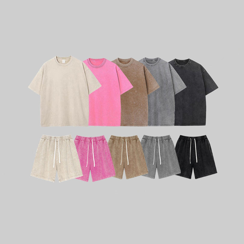 Personalizado 100% algodón para hombre de gran tamaño sólido de alta calidad de lujo Vintage de punto pesado camiseta pantalones cortos conjunto ecológico