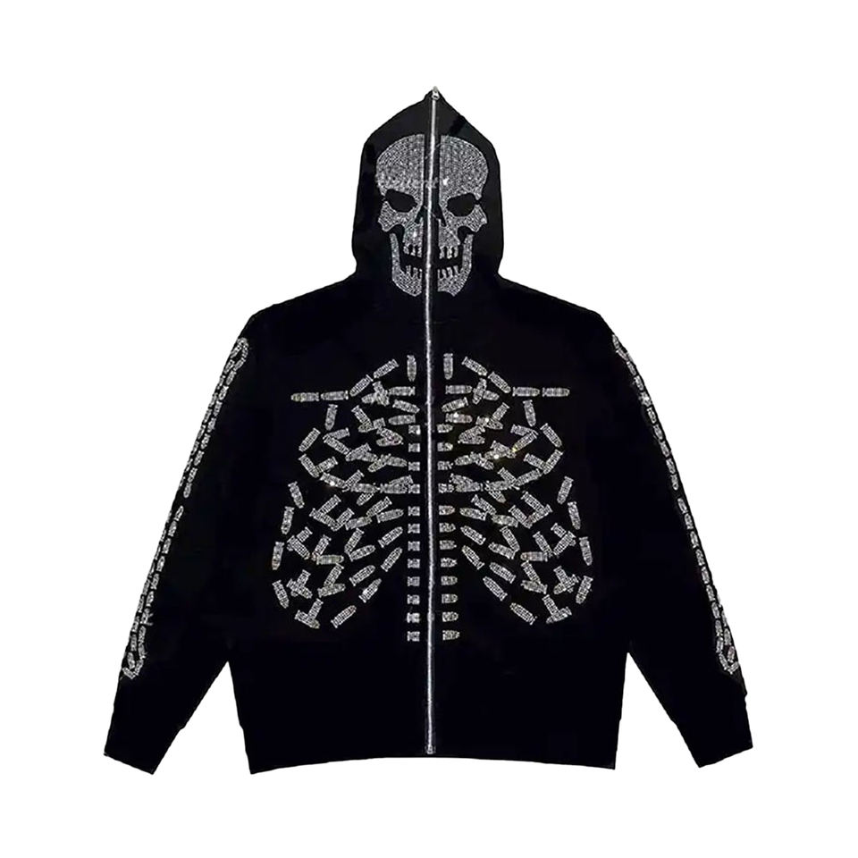 Sudaderas con capucha personalizadas 100% de algodón con diamantes de imitación, sudaderas con capucha con estampado de soplo y logotipo desteñido al sol, sudaderas con capucha térmicas lavadas con ácido y hombros caídos para hombres