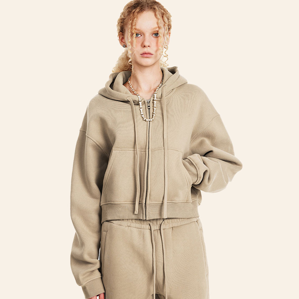 Conjunto de pantalones de chándal de invierno de algodón 100% personalizado, ropa de calle, sudaderas con capucha cortas informales de peso pesado y trajes de joggers para hombres