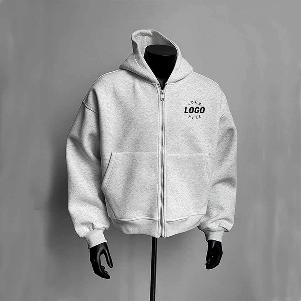 Sudadera con capucha personalizada con cremallera de Algodón 100% con diseño de moda Mochila de peso pesado Cremallera Pull-Up para invierno